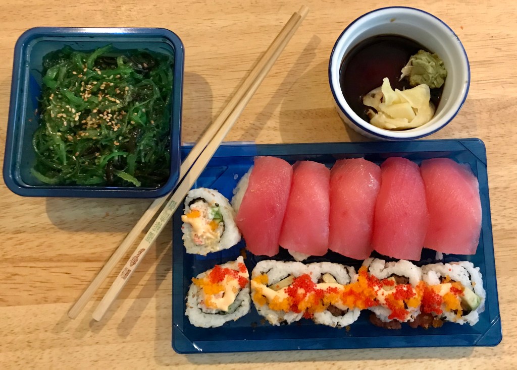 We have a new grocery store in the area. It is called Lucky’s California and it is kind of like Whole Foods. It has an extensive ready-made section. Not only is their sushi good but they also have poke that I am interested in trying. It is an expensive way to eat but not as expensive as going to a restaurant.