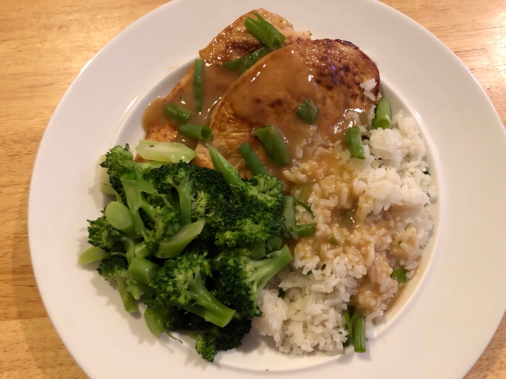 We made an easy dinner tonight. John cooked the chicken in a pan and made the sauce out of packet of chicken gravy substituting Marsala wine for part of the water. I steamed the broccoli and reheated leftover rice. I just noticed that we forgot to add mushrooms to the sauce but it was good anyway.