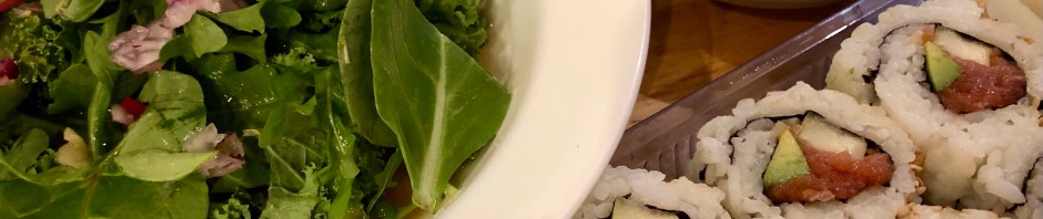 We have thrown our menu out the window because it is too hot to be heating up the kitchen by turning on the oven or the stovetop. So we opted to get take-away sushi and I made a salad with nuoc cham dressing.