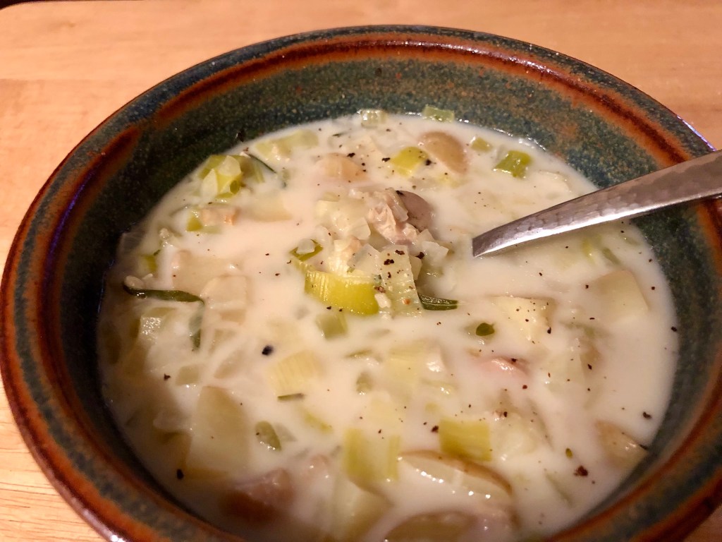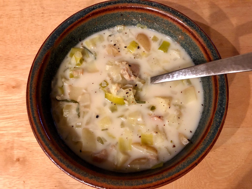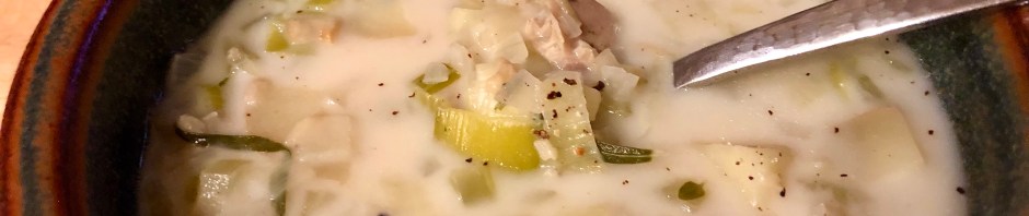 We finally got around to making clam chowder since the weather has cooled down some. Rhode Island style chowder is much lighter than its super thick and creamy cousin to the north. Of course I have pared down the cream even more and my recipe only calls for two tablespoons. We lived it up a bit and used 1/4 cup .