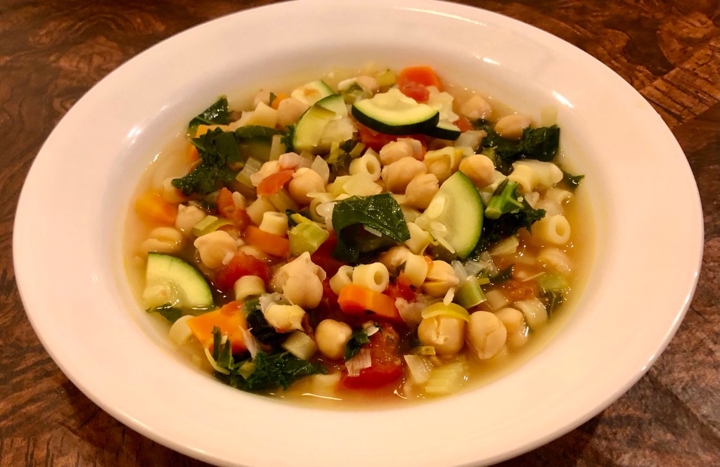 I like this recipe because you can change it up depending on what you have on hand. No spicy tomatoes? Use a can of regular tomatoes and a couple of shakes of red pepper flakes. Have some broccoli or green beans that need using? Chuck those in. Tonight I used zucchini, kale (cut up the stems and put them in earlier), a leek, and tarragon. Also if you are not vegan/vegetarian you can use chicken broth, or a parmesan rind, and a sprinkle of the parm on top. Be sure to season your items as you cook them. This dish definitely needs salt and pepper.