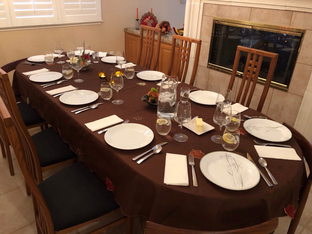 John and I hosted 10 people and the preparations were done a lot in advance so that actual Thanksgiving day was easier (except for all the dishes and glassware.) We set out a buffet style table and then sat at our dining room table for dining.