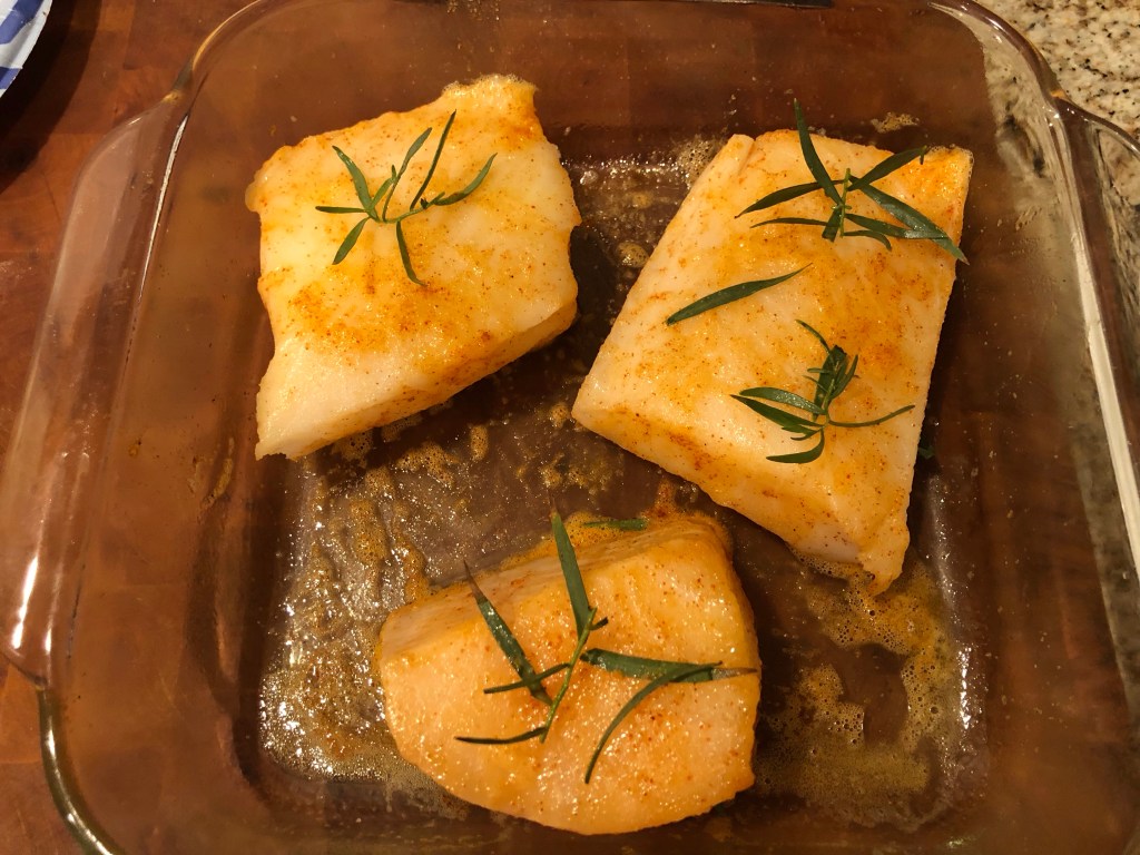 The dinner is fabulous. Everything is cooked well and the delicious fish makes it seem like a festive occasion. Chilean sea bass is expensive but there is no waste and, if you buy the frozen product from Costco, it is much less pricy but still wonderful.