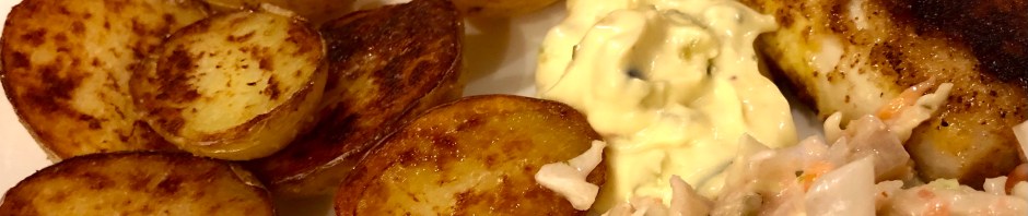 I also made some tartar sauce. It is a mixture of half light mayo and half nonfat plain Greek yogurt. I also added a bit if yellow mustard, grated onion, garlic powder, lemon juice, sweet relish, and capers.