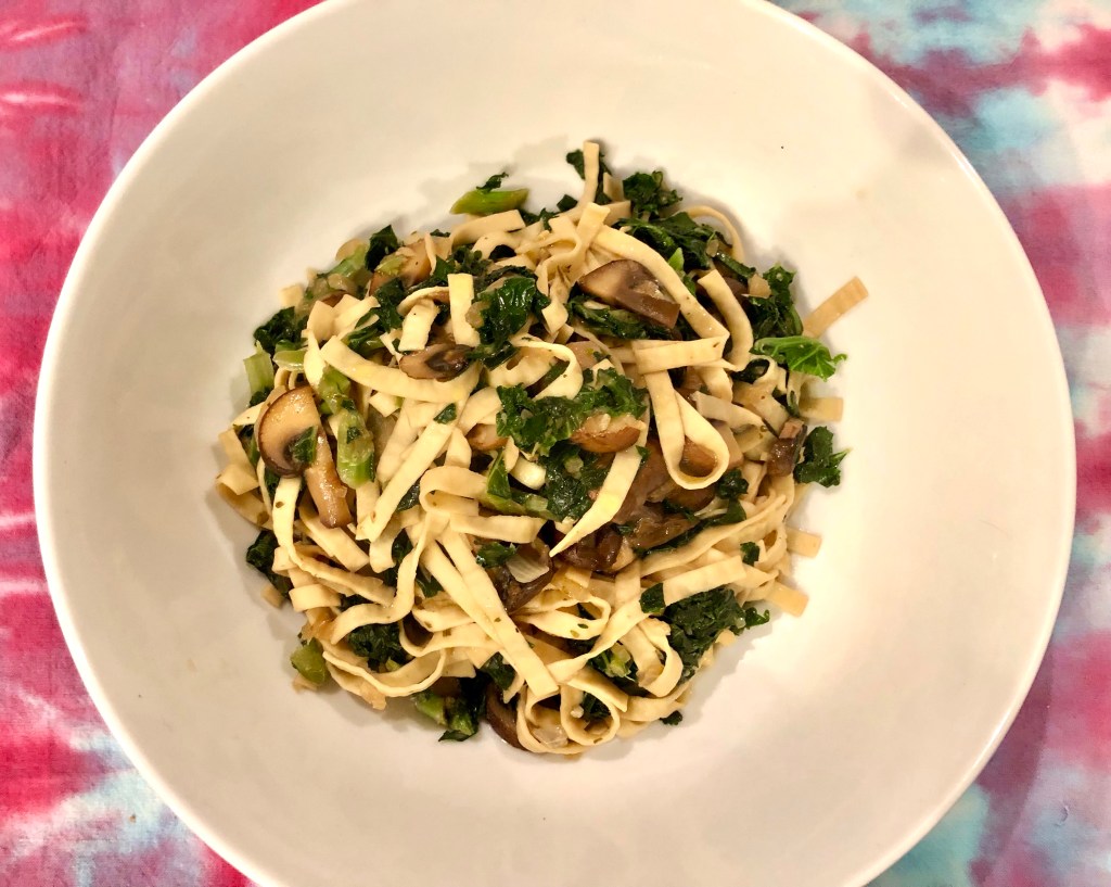 I am so loving this carba-nada pasta. We have been eating the fusilli and have now tried the fettuccine. It cooks in about three minutes and you can have quite a bit since it has lower calories and carbs. In fact I considered not eating my whole bowlful because I was full. (I did, however, power through and eat the whole thing! Will I never learn!?)