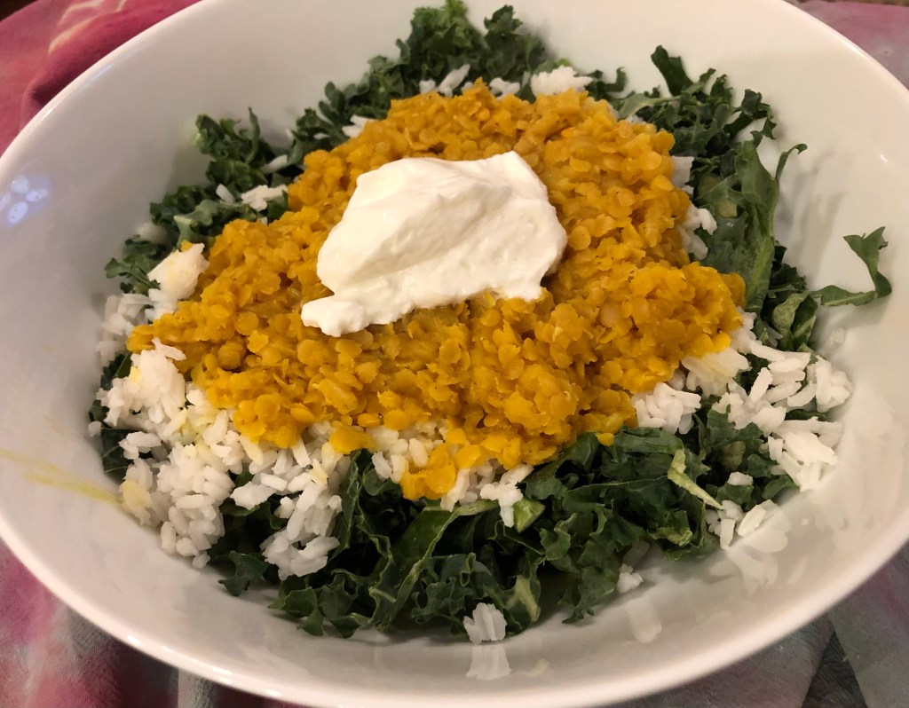 Gingery red lentils with rice and kale 3/24/22