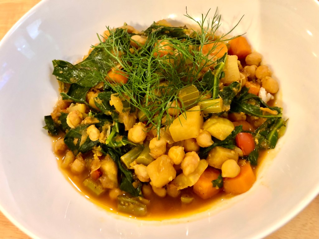 The following recipe uses dried chickpeas. If you are using canned chickpeas use two cans drained and rinsed and skip step 3. Cook the chickpeas and vegetable together until the vegetables are tender and the chickpeas are warmed.