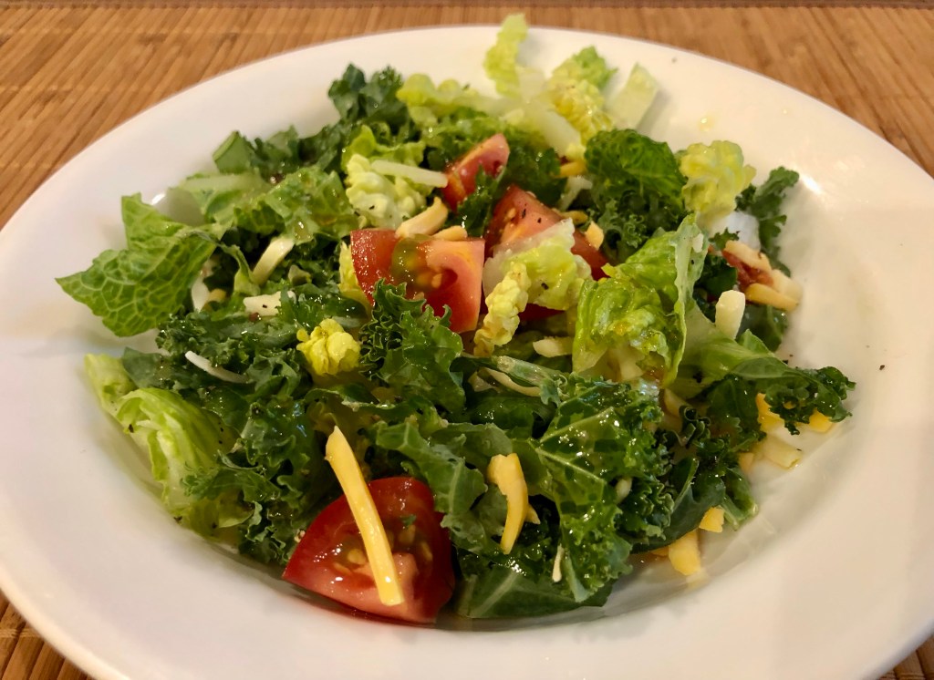 Today I started my low carb living with a delicious piece of Chilean sea bass with an accompanying salad and sautéed zucchini. We ate the salad as a first course dressed simply with olive oil and red wine vinegar.