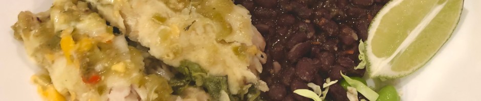 Tonight’s dinner is all about ease. Buy a large jar of salsa verde, corn tortillas, shredded Mexican blend cheese, and pulled leftover cooked chicken, a rotisserie chicken, or the easiest, a pack of cooked white meat chicken from Costco. Shred the chicken. Put a layer of salsa verde down in a 9 X 13” baking dish. Heat the tortillas over an open flame until they are supple. In each tortilla put some chicken, salsa verde, and cheese. For extra flavor add chopped onions and Serrano chiles. Roll them up and put them in the baking dish seam side down. When you have completed all your tortillas cover them with salsa verde and sprinkle on any remaining cheese. Bake in a 350F oven until the cheese is melted and the casserole is bubbly, about 1/2 hour. I fit 12 enchiladas in my dish which is slightly smaller than standard size.
