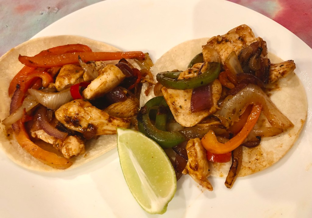 We had a little Mexican party tonight. It started off with chips, guacamole and margaritas. For the main course we made chicken fajitas. We bought a little packet of chicken fajita seasoning mix which gave us instructions on how to make the chicken, peppers, and onions. Instead of flour tortillas we used corn tortillas. It all turned out pretty tasty and we enjoyed our little fiesta!