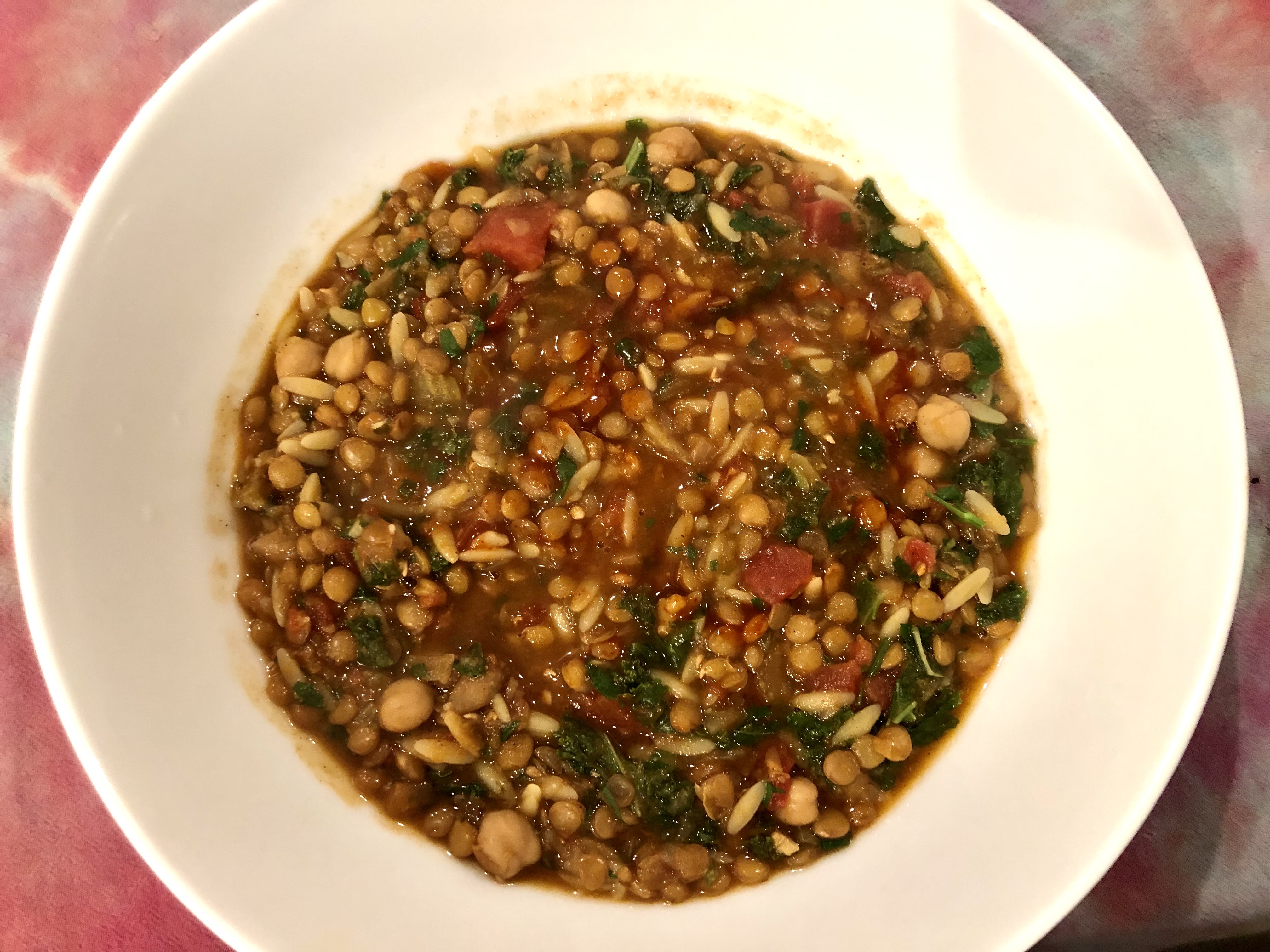 While I was away John saw an episode of America’s Test Kitchen where they made this North African dish. He thought it looked doable and good so we put it on the menu for this week. We tweaked the recipe a bit and made it spicier and more stew-like. You can use chicken stock or keep it vegan by using vegetable stock. It turned out pretty well and we will probably make it again.