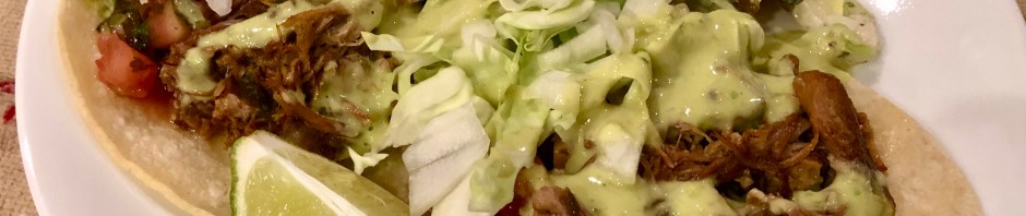 A quick broil in the oven while the tortillas heated up finished the carnitas. In my tacos I included salsa, cabbage, avocado crema, and onions. I served a prepackaged Southwest salad from Taylor Farms to round out the dinner.
