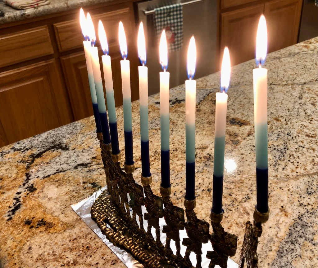 Before we are totally enveloped in Christmas celebrations we took time out for John’s holiday, Hanukkah. Although this is a minor holiday in the Jewish calendar it has gained status due to its proximity to Christmas. Since it celebrates the miracle of one day’s worth of oil lasting for eight days, the foods for the holiday are fried in oil.