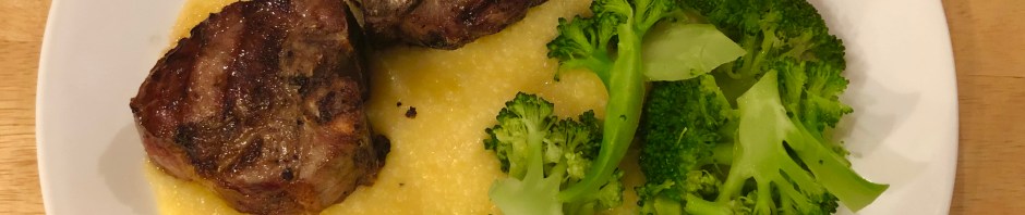 We use Bob’s Red Mill polenta and make it at a ratio of 5.5 liquid to 1 part polenta. Since we were having a splurge night I put a little butter and cheese in it. Normally we just eat it without added fat and it gets flavor from salt, garlic, and bay leaves. Broccoli goes really nicely with the polenta.