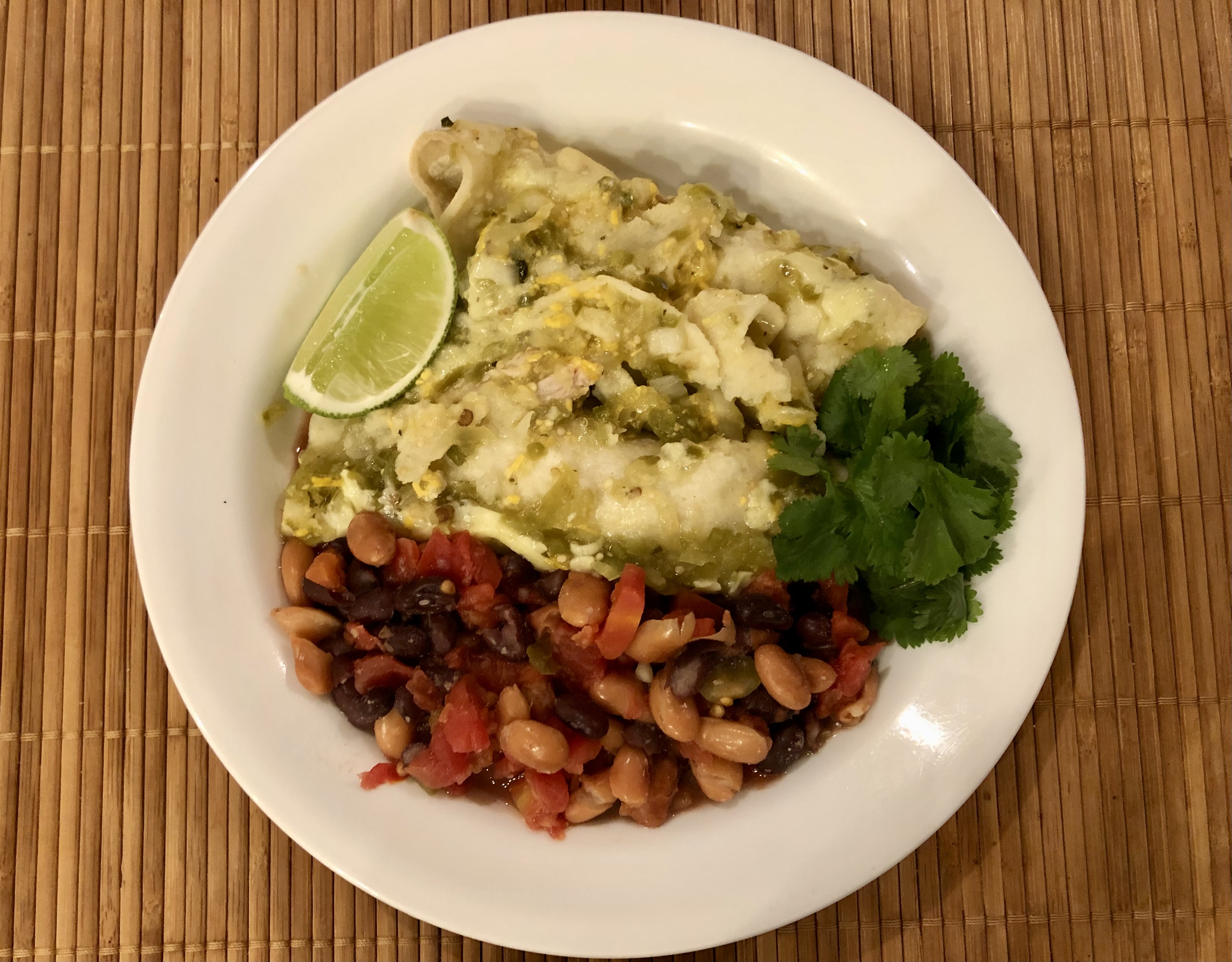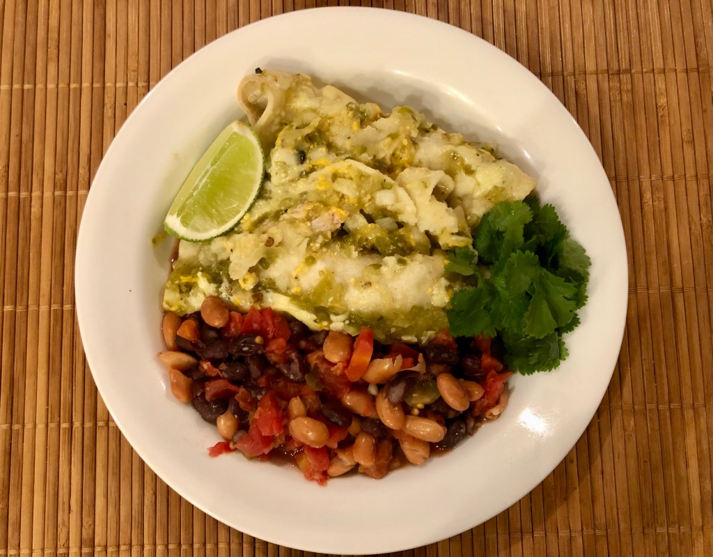 Between the three of us we ate eight of the enchiladas and most of the beans. I figure that the four remaining enchiladas will make a nice lunch for John and our daughter or a dinner for John and me if I get tired of cooking in the coming week!