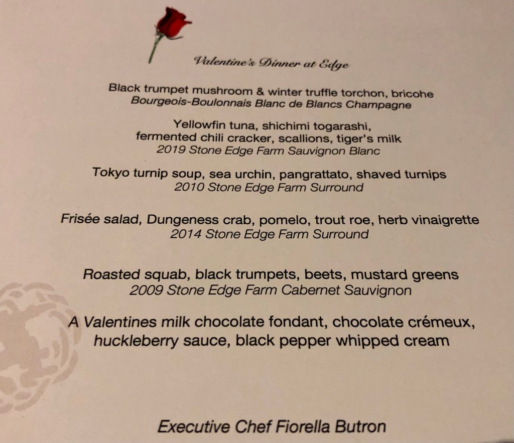 We had a wonderful dinner at EDGE in Sonoma. The food, wine, and ambience were superb. I have no regrets over this splurge.