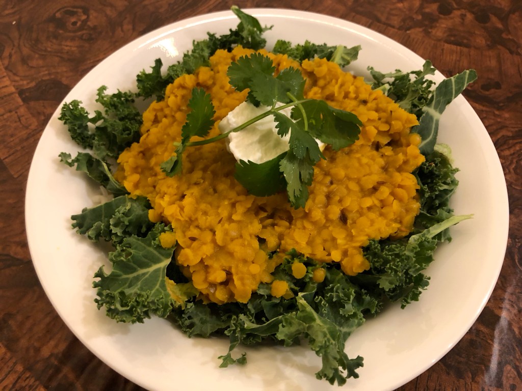 The food this week is comfort food such as the meatloaf I made last night, easy things like this Afghani dal, and minimal clean-up dishes while we suffer through jet lag.