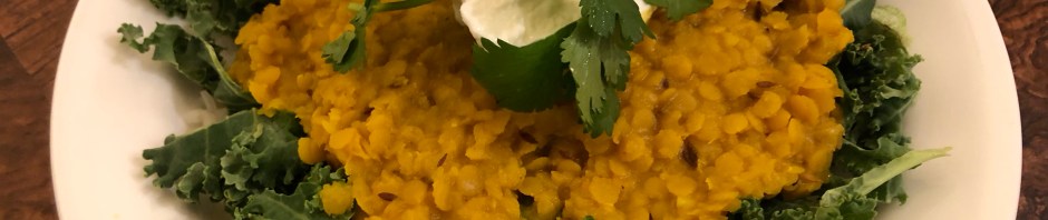 The food this week is comfort food such as the meatloaf I made last night, easy things like this Afghani dal, and minimal clean-up dishes while we suffer through jet lag.