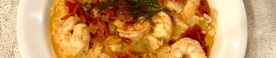 Last night we treated ourselves to a bit more cream in the sauce. Usually we only use two ounces and make up the rest of the volume with shrimp stock or clam juice. The original recipe calls for a cup of cream. We probably used 6 ounces plus the shrimp stock. There were three of eating and everyone enjoys more sauce.