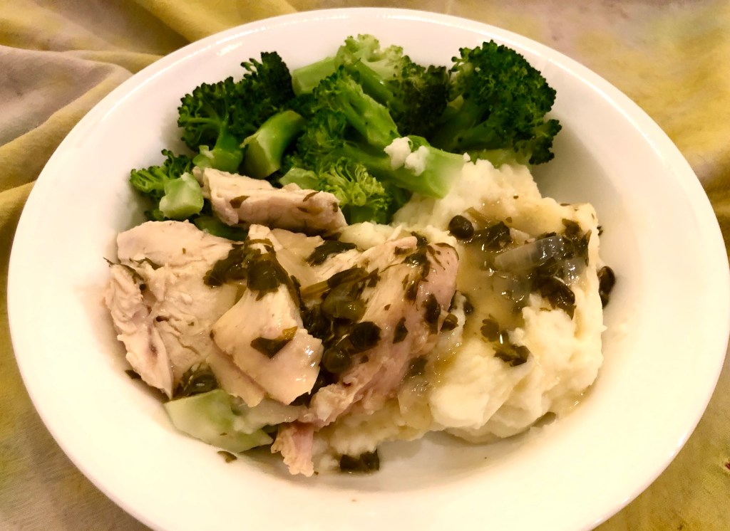 Along with our tasty chicken piccata I made mashed potatoes which were so yummy with the sauce. Broccoli rounded out our surprisingly delicious dinner.