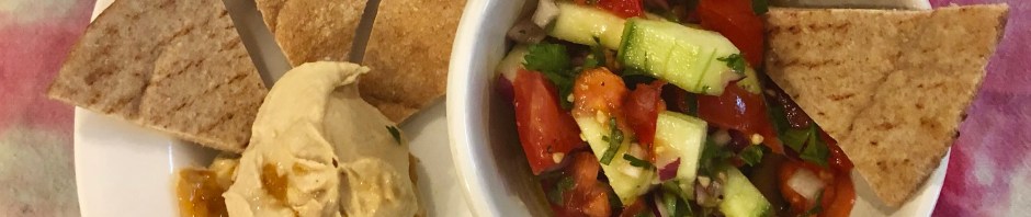 The Israeli salad is a combination of tomatoes, cucumber, parsley, mint, and red onion in a lemon vinaigrette. I got the recipe from A Cedar Spoon website https://www.acedarspoon.com/israeli-salad/. A few words to the wise about this recipe; it needs a lot of salt and benefits from some sort of hot sauce. Plus seed the cucumber and pre-salt it in a colander first so that you release some of its water. Otherwise the vinaigrette turns out bland and soupy after you put it on the tomato/cucumber mixture.