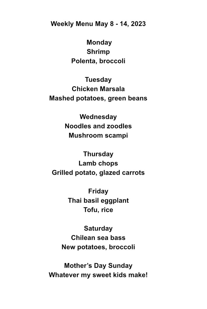 Weekly Menu. May 8-14, 2023