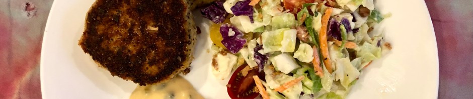 After already eating a lot of legumes this week, we decided to change the menu on Saturday from lentils and turkey sausage to tuna cakes and salad. Plus changing to tuna cakes allowed us to use up the last of our mashed potatoes and tartar sauce.