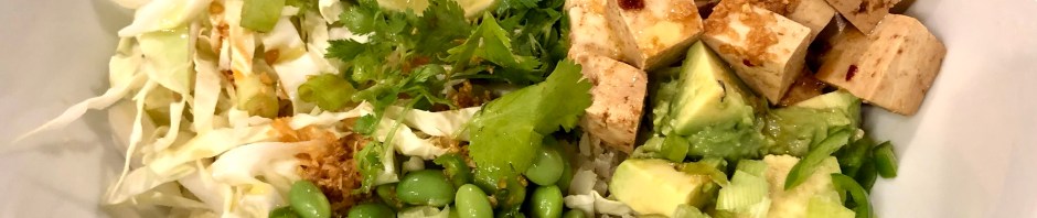 We have been having a spell of pretty hot weather the last few days, in the 90s. Complicating the hot weather was a power outage mid-day so no AC or fans. Thus our house was warmer than usual at dinner time even though the electricity was back on. A tofu bowl with almost no cooking was the right meal for the day.