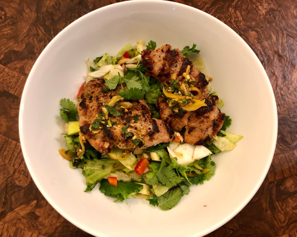 In case you would like to try the original recipe, here is a link – https://cooking.nytimes.com/recipes/1017575-spicy-thai-pork-tenderloin-salad?smid=ck-recipe-iOS-share Since it is a NYTimes cooking site recipe it is unfortunately behind a paywall. We made ours a little differently and certainly did not use as much oil or 5 tablespoons of brown sugar! I know that John only used a teaspoon of the sugar. Maybe some of our changes resulted in a less than spectacular dish (but I don’t think so.)