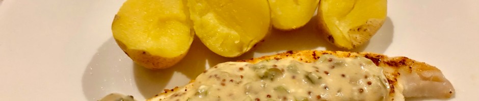 We were supposed to be making Singapore shrimp but after our big, fancy dinner on Thursday we decided to go with something a little more modest, tilapia with mustard sauce and steamed new potatoes.
