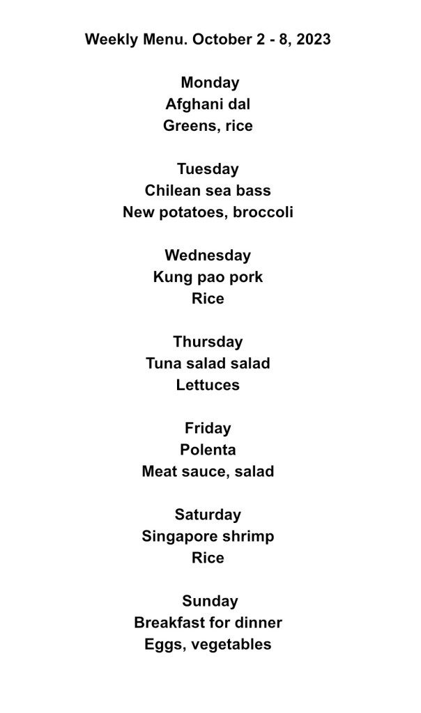 Weekly Menu October 2 – 8, 2023
