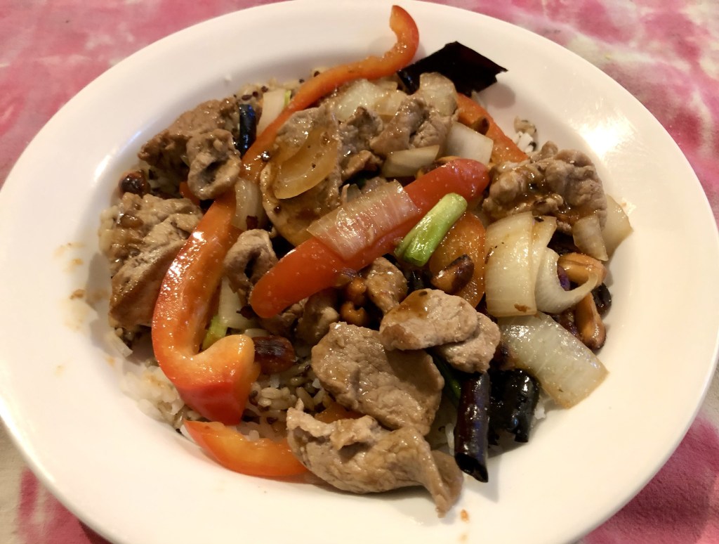 I was more a helper than the main cook on our dinner, kung pao pork. Last week our kung pao shrimp had turned out quite tasty using a recipe by Jet Tila. I thought trying it with pork tenderloin might be a good idea. It was pretty good but even though John cut the pork in thin slices and stir-fried it quickly it came out dry. We have one more pork tenderloin in the freezer. I really do not know how to make it juicy and delicious.