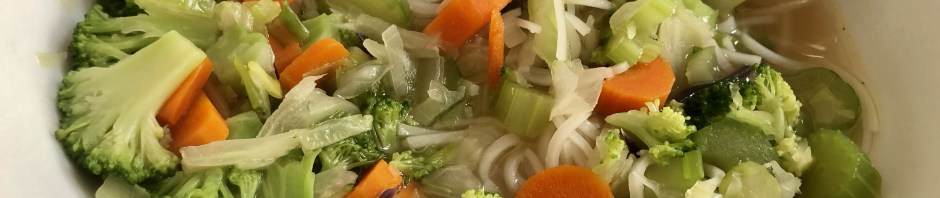 I love a big bowl of vegetables and noodles. Since I have acquired this gluten sensitivity I have been missing noodles. Last week I made a quick pho-like soup which was good but it was missing an assortment of vegetables. Today’s soup was brimming with different vegetables and a helping of rice noodles underneath. I used some of my homemade chicken stock but to keep it vegan use a vegetable broth.