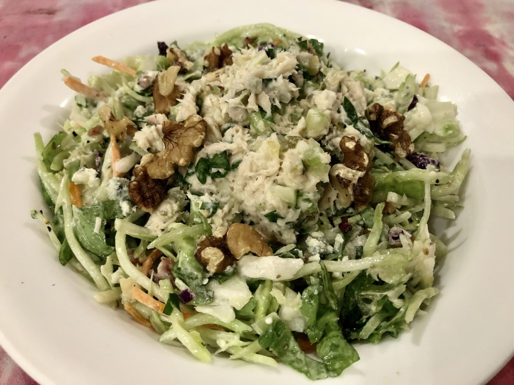 The salad is merely a kit salad from Taylor Farms. Steakhouse Wedge is our favorite. I added some walnut pieces for texture. My tuna salad consisted of solid white albacore packed in water, light mayo, diced celery, capers, sweet relish, and chopped parsley. Usually I make it half mayo and half plain Greek yogurt but since John was eating it I went the mayo only route. He made himself a sandwich for sandwich and salad dinner and I am sure he put even more mayonnaise on the bread.