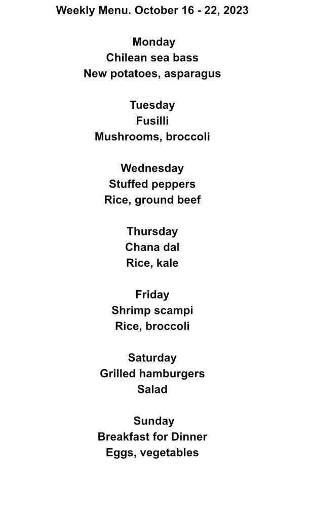 All I can say is better late than never! At least I know that I have stuck to the menu for the first three days of the week!