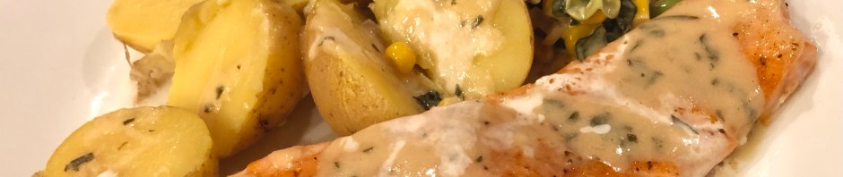 The dinner was delicious but too rich and too much for me to eat! I had leftover everything which John happily ate. Next time a smaller portion of salmon and plain vegetables are what we will be making!