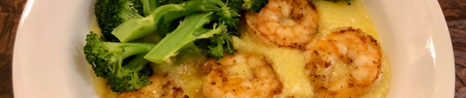 We have not planned a menu or gone food shopping for this week but we always have shrimp, broccoli, and polenta on hand. Except for all the stirring of the polenta (we take turns!) this is a really easy, quick, delicious dinner!