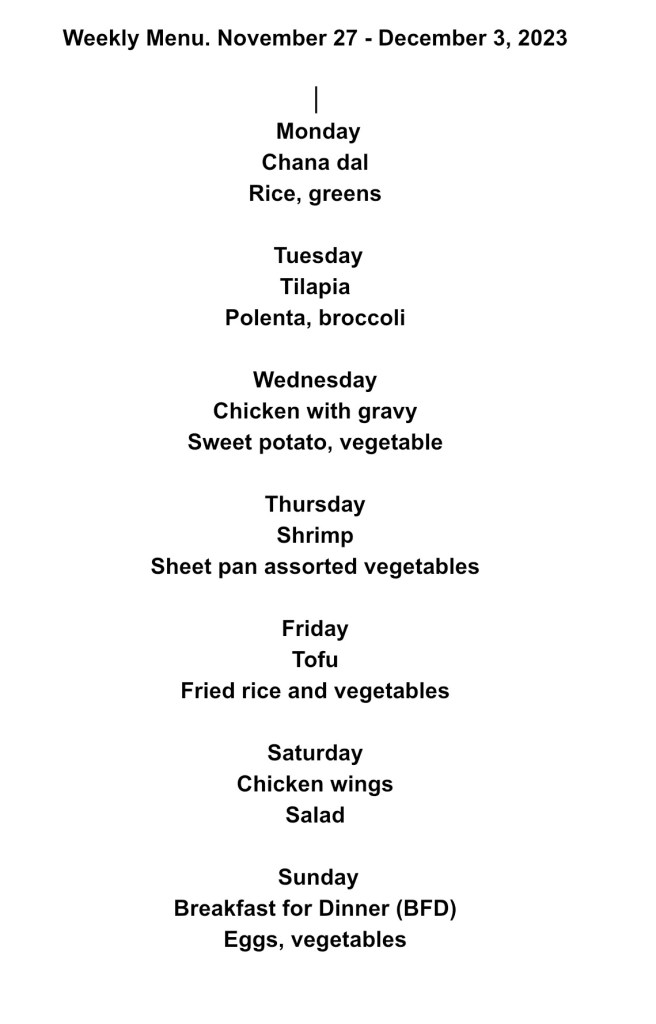 Weekly Menu – Nov. 27 – Dec. 3, 2023