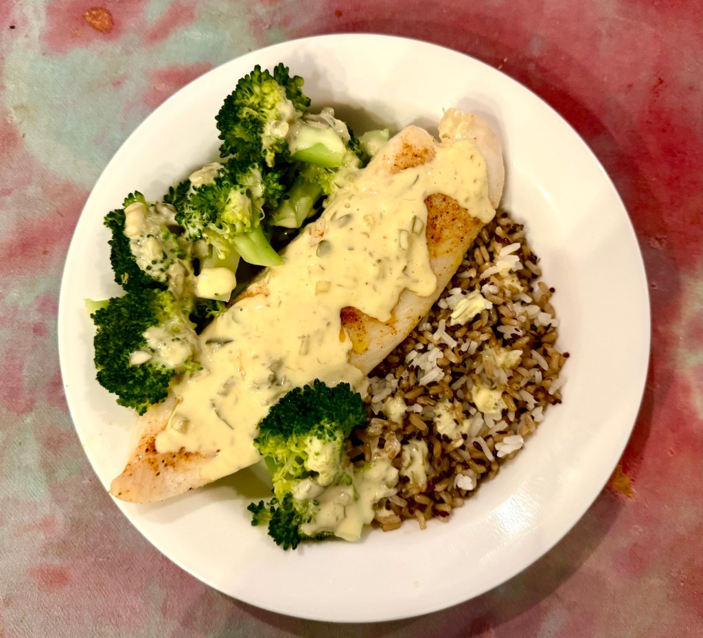 Since we eat fish at least once a week I am always looking for new ways to make our dinners more exciting. Friday’s dinner had the excitement of mixed rice and quinoa plus a creamy tartar sauce.