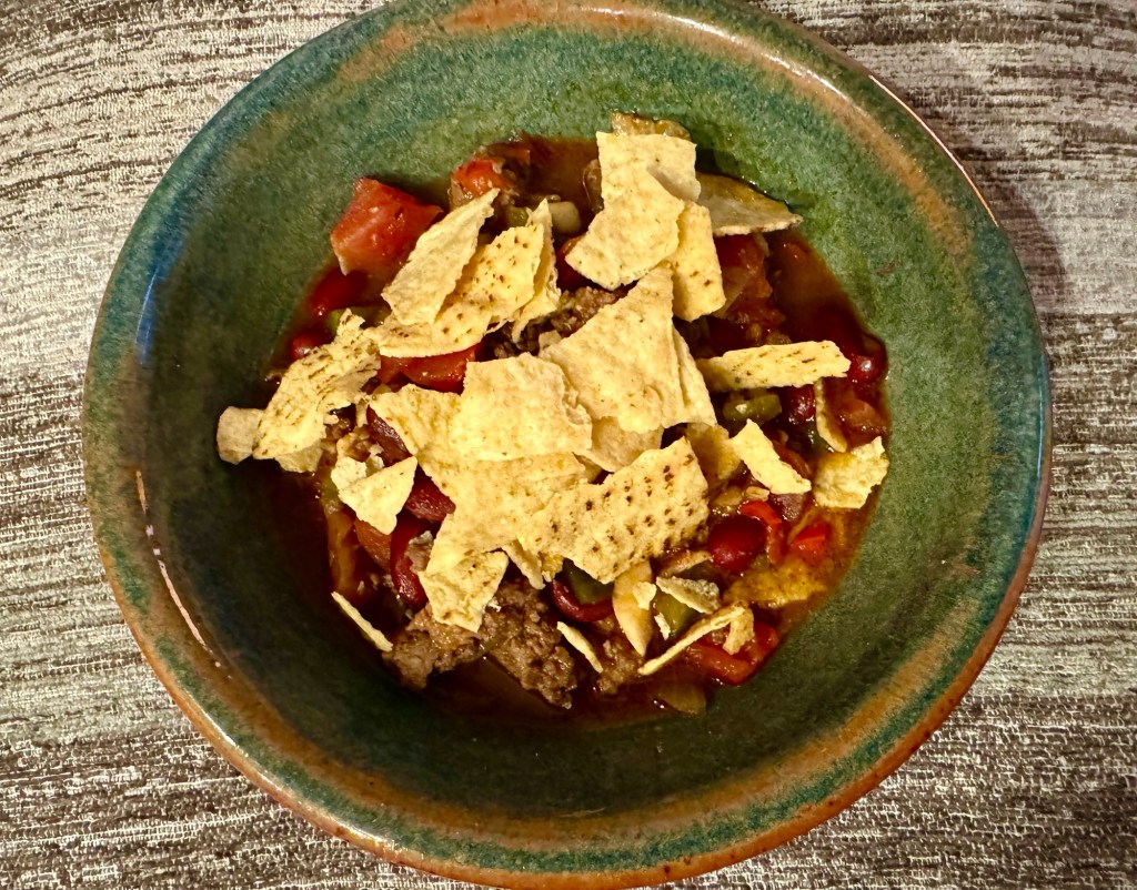 The odd thing about this chili was that it did not taste like chili at all! It was more like a middle eastern stew of ground beef, tomatoes, beans, spices, and peppers. John had put some zip into it with chili powder and a little chipotle chili powder. Still, there was an undeniable sweetness to it like he had put in coriander and cinnamon. I don’t know, maybe that is just my feverish flu imagination taking over!