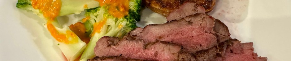 Several weeks ago we bought a boneless leg of lamb. It was too much for the three of us to eat so John made up a packet of bits and pieces and also a piece that was one large muscle and froze them. On Saturday he grilled the large piece which was slightly over one pound. He did a beautiful job cooking the lamb to a perfect medium rare.