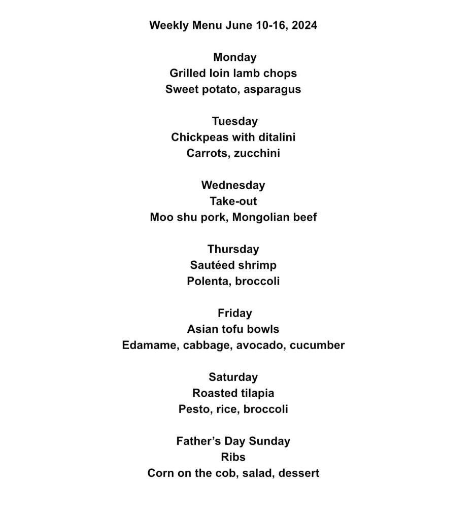 This week has a couple of events. Sunday the 16th is Father’s Day and I am trying to come up with food that will let John relax instead of cook. But it also needs to be something that the grandkids will eat so it is currently up in the air until I hear back about whether they like ribs. The other event is that I am having cataract surgery on Wednesday so I want to make something light for Tuesday and then we will just get take-out on Wednesday.