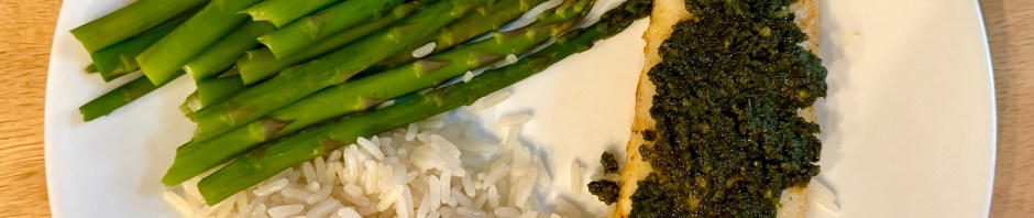 Rounding out the dinner was a portion of rice and quite a few spears of asparagus. The pesto tasted good on them too!