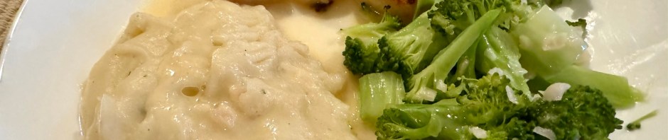 I am scrambling to get the broccoli in the pan and figure out how to make a beurre blanc. The sauce needs some oversight or else it will split. It is basically an emulsion of white wine and white wine vinegar and butter with some minced shallot and a tablespoon of milk or cream as a stabilizer. The butter needs to stay cold and is whisked into the liquid off heat. There are a lot of recipes for beurre blanc on line. It turns out that it is pretty easy to make and mine does not break.
