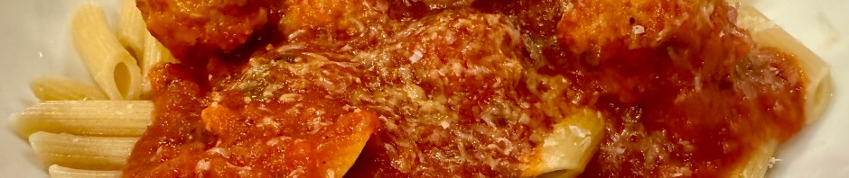 Basically this dinner was all short cuts. I used Rao’s tomato basil sauce and Rosina’s frozen meatballs. Usually I dump the cooked pasta into the sauce but since I had a lot of sauce and a lot of meatballs I poured some sauce and meatballs over the pasta so I could save the rest of the sauce and meatballs for another dinner. I am not crazy about the frozen meatballs and I think in the future I will make my own. Rao’s sauce is very good but pretty pricey.