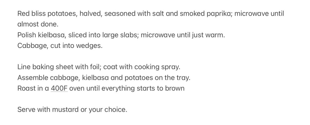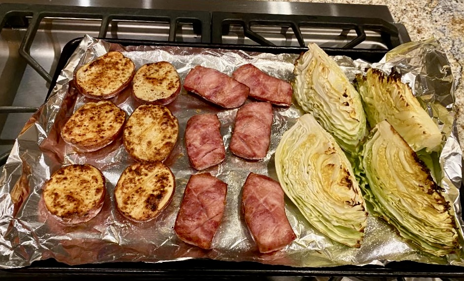 John made this sheet pan dinner for Sarah and him the other night. I wish I could have been there. it looks so good! Here are John’s notes about the dinner.