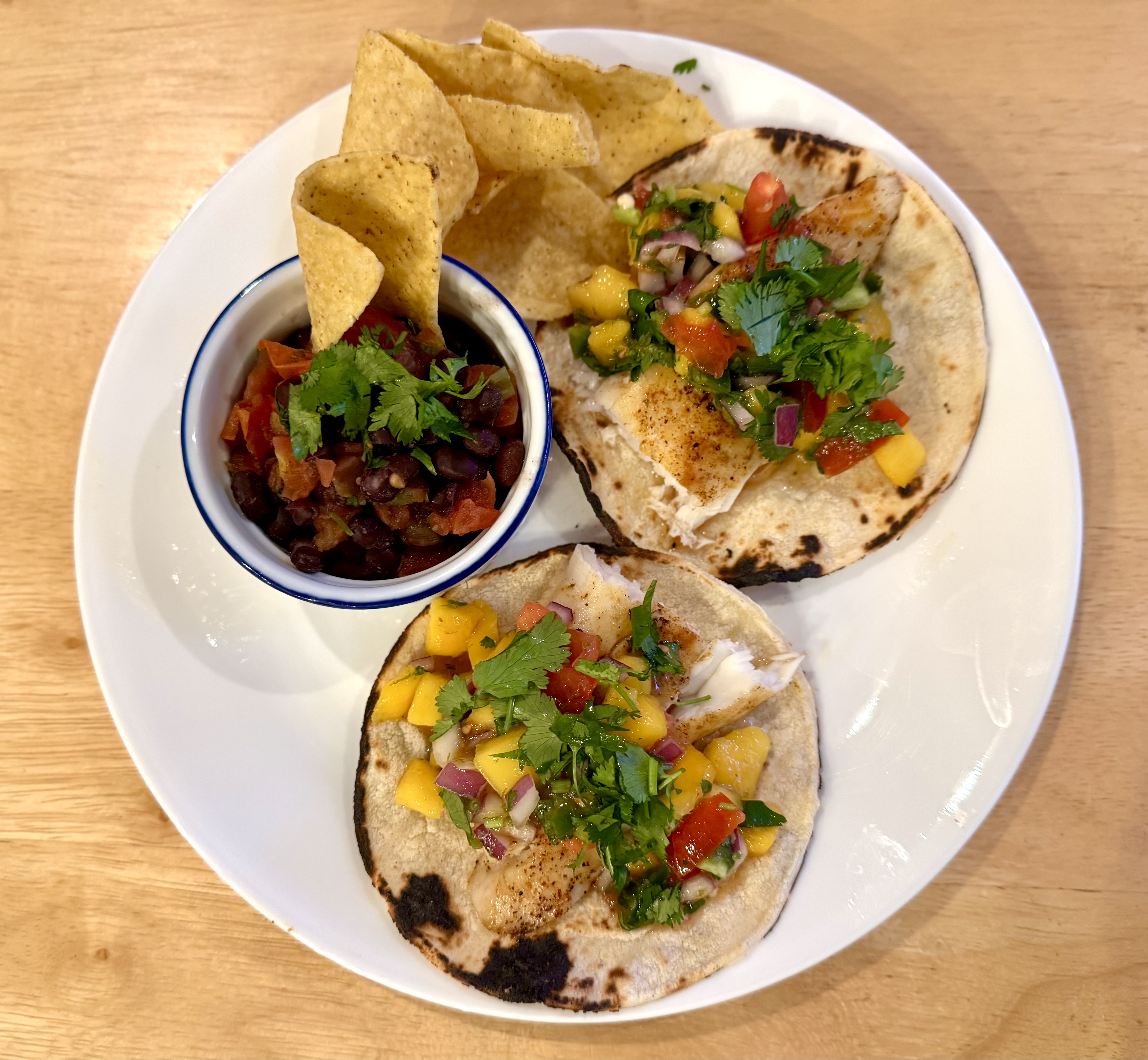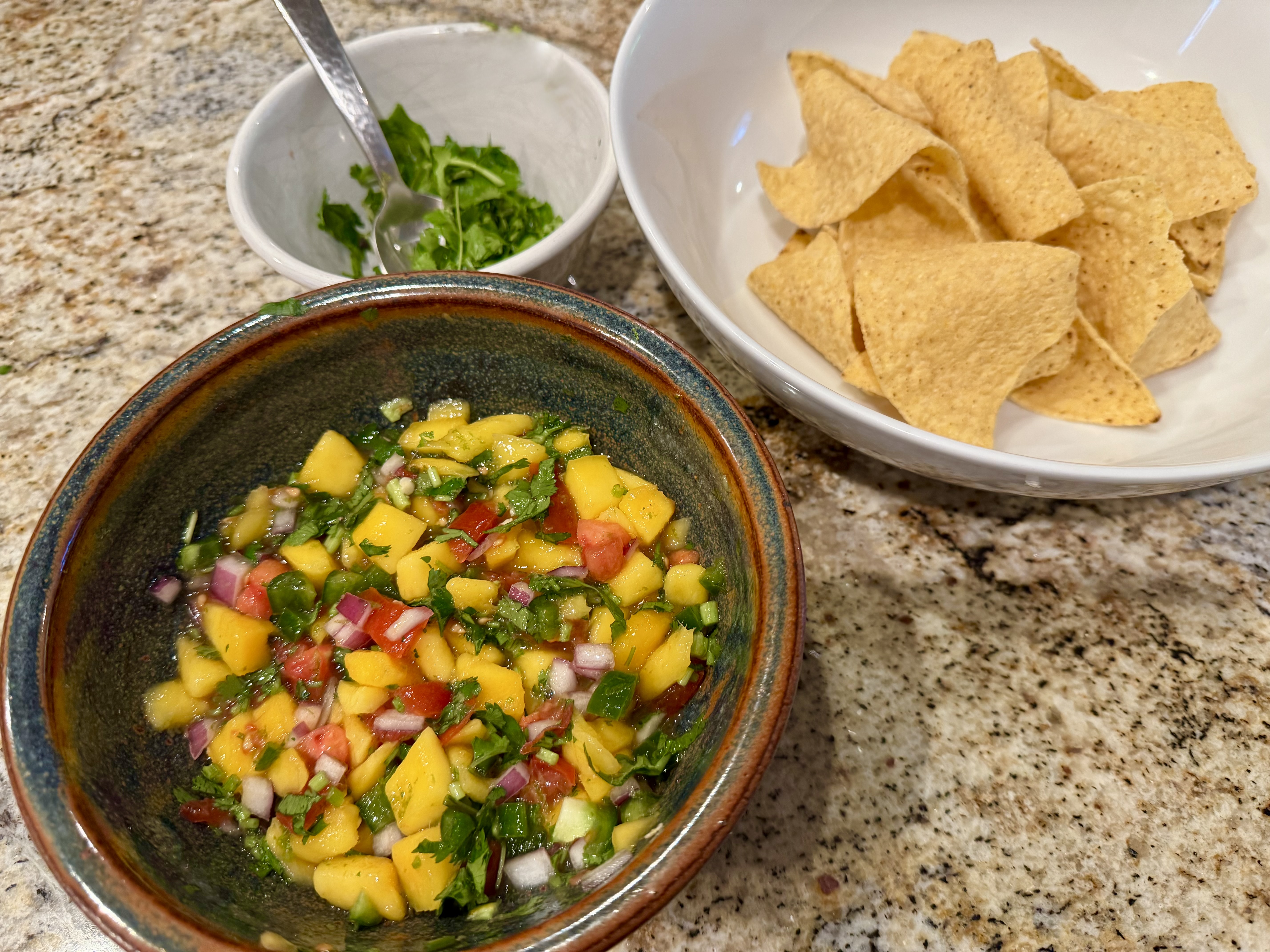 I also made my own salsa. I was lucky enough to find a mango that was ripe enough to use right away. I diced it, and a couple of small tomatoes, then mixed in the juice and zest of one lime, half a chopped jalapeño, 1/4 cup chopped red onion, salt to taste, and 1/4 cup chopped cilantro. It was delicious and really elevated our tacos! Sometimes doing a little something extra really pays off.