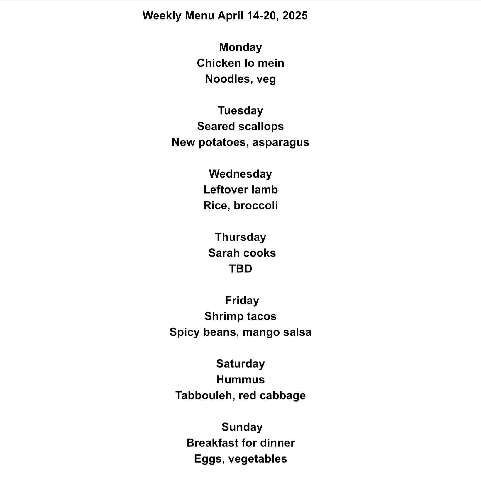 This entry was posted in Weekly menu. Bookmark the permalink.