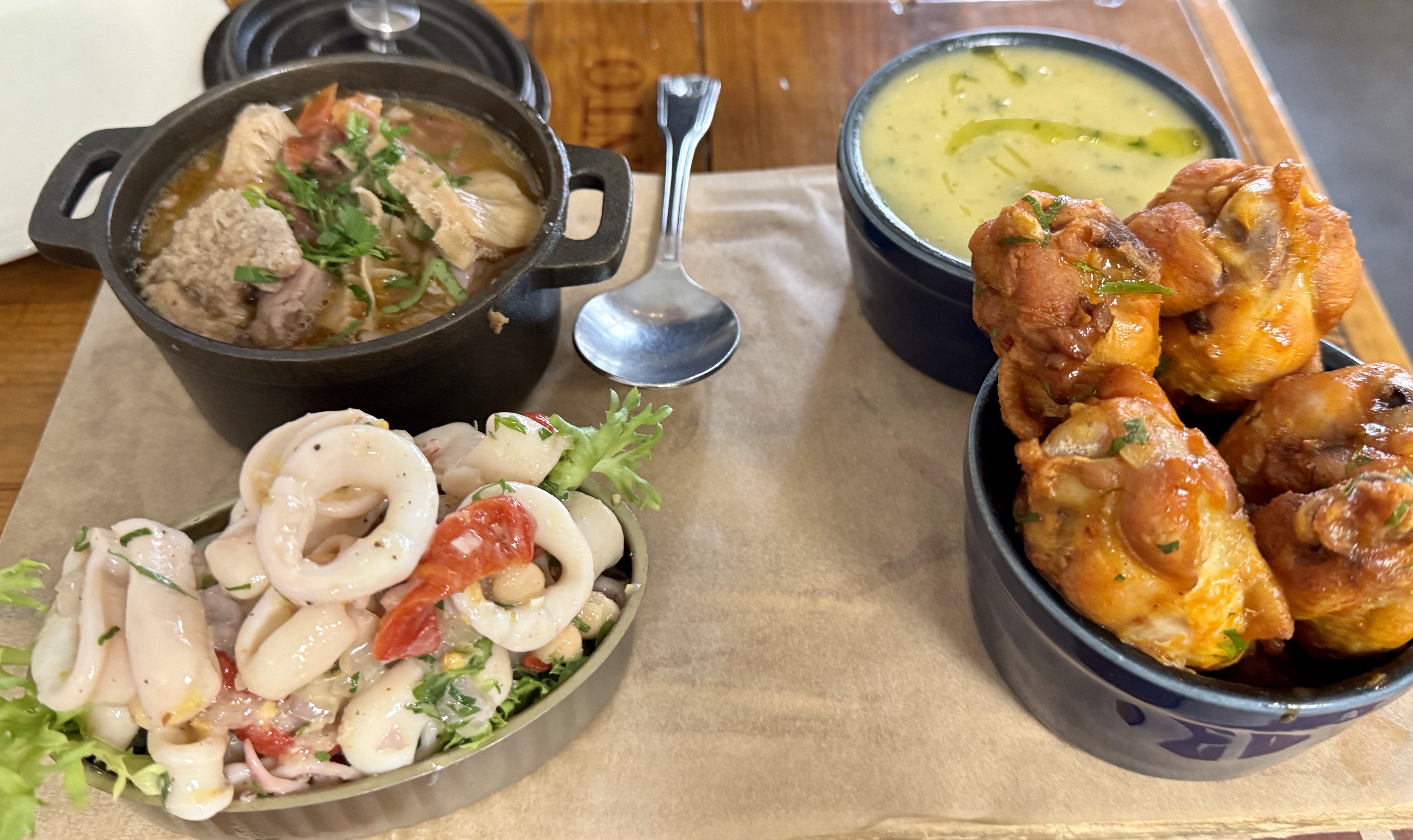 Tasca Tasca is a Portuguese tapas restaurant in downtown Sonoma. We have not eaten there for a while and the idea of ordering a selection of different things appealed to us. The menu offers tasting plates of 3,5, or 7 items. I decided on 3 and John on 5. Then I got talked into also getting the soup so I actually had 4 items. The items come in ramekins and you would think that it is not so much food. But it is a lot of food! I am glad that I got the soup, caldo verde (hot green), but I ate that first and then I was pretty full before I even started. Everything was tasty. I gave part of my pork slider to John and traded him my chicken drumsticks for his flats. Even with the trade I could not finish the chicken wings. I also could not eat all the beets. They were in really big chunks.