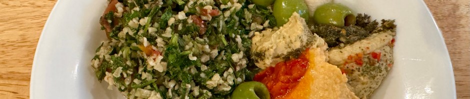 Originally it was supposed to reach 90F for the first hot day of the season. Actually I think it was only 86F but I had planned this hot night dinner and was thus commanded by the menu hanging in my kitchen to make it. Truthfully there was not much to make with the exception of the tabbouleh which came out probably the tastiest I have ever made. Here is the recipe I mostly follow—https://cooking.nytimes.com/recipes/1012585-tabbouleh?unlocked_article_code=1.JE8.hsPV.fcS-0yBRDYln&smid=ck-recipe-iOS-share. I used petite diced canned tomatoes with a little added sweetener instead of whole chopped tomatoes because it is not tomato season yet. I also use more bulger wheat. I am careful with the amounts of lemon juice, olive oil, and salt I add, tasting as a go along.